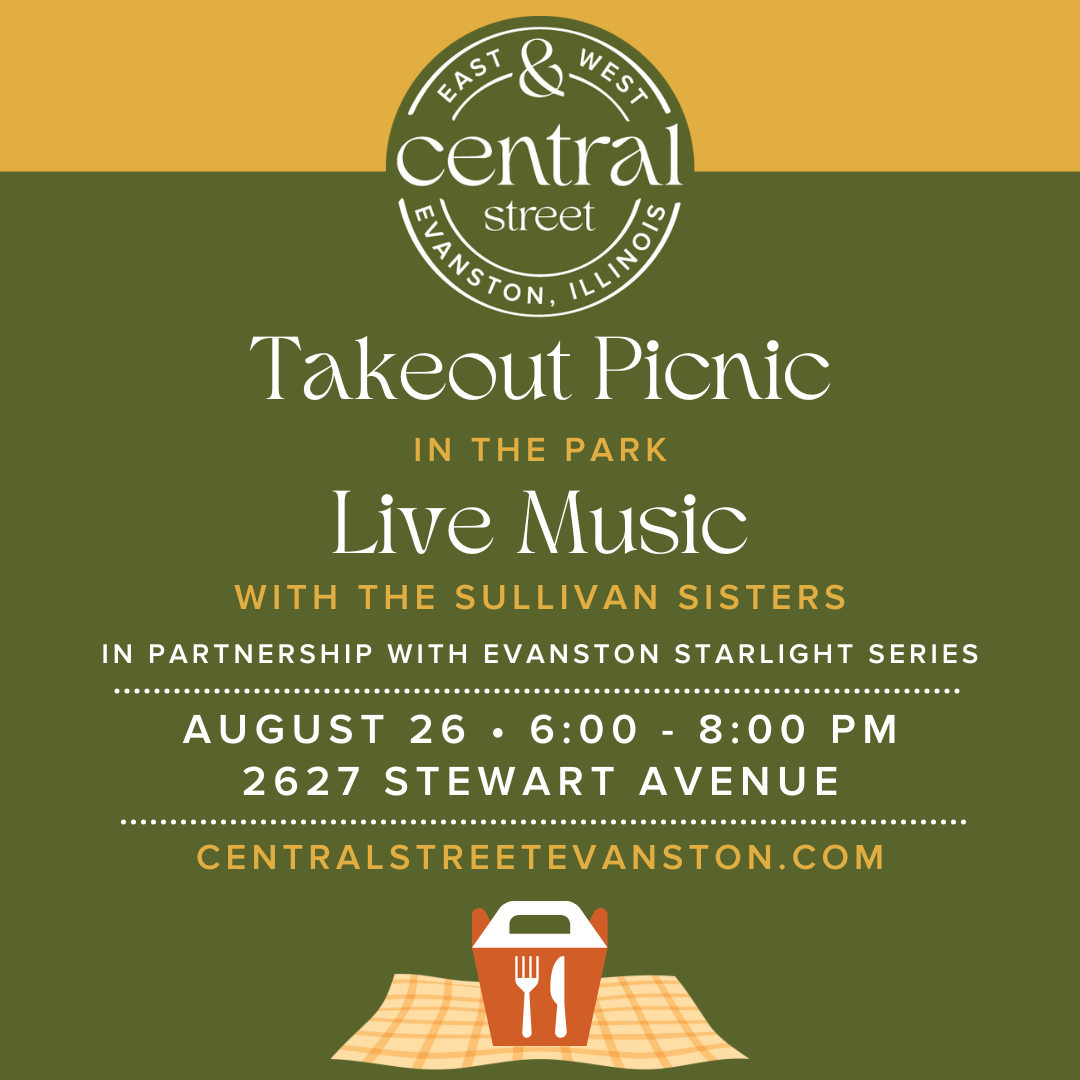 Join Central Street for their 4th Annual summer evening Takeout Picnic to support great Central Street restaurants. Order take out from a local Central Street restaurant, grab your blanket, bring it to the park, and enjoy your dinner under the lights with bluegrass darlings, The Sullivan Sisters duo. Event is in partnership with the Starlight Concert Series and takes place Tuesday, August 26, from 6 p.m. to 8 p.m. in Independence Park. Learn more on the Central Street website or on Facebook.